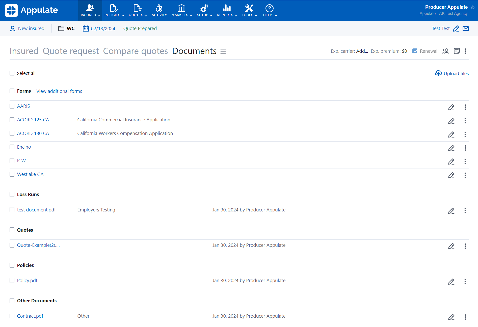 Appulate can also be used to define which specific steps an agent user would need to go through to initiate the policy binding workflow within Appulate following the acceptance of the quote by the insured.