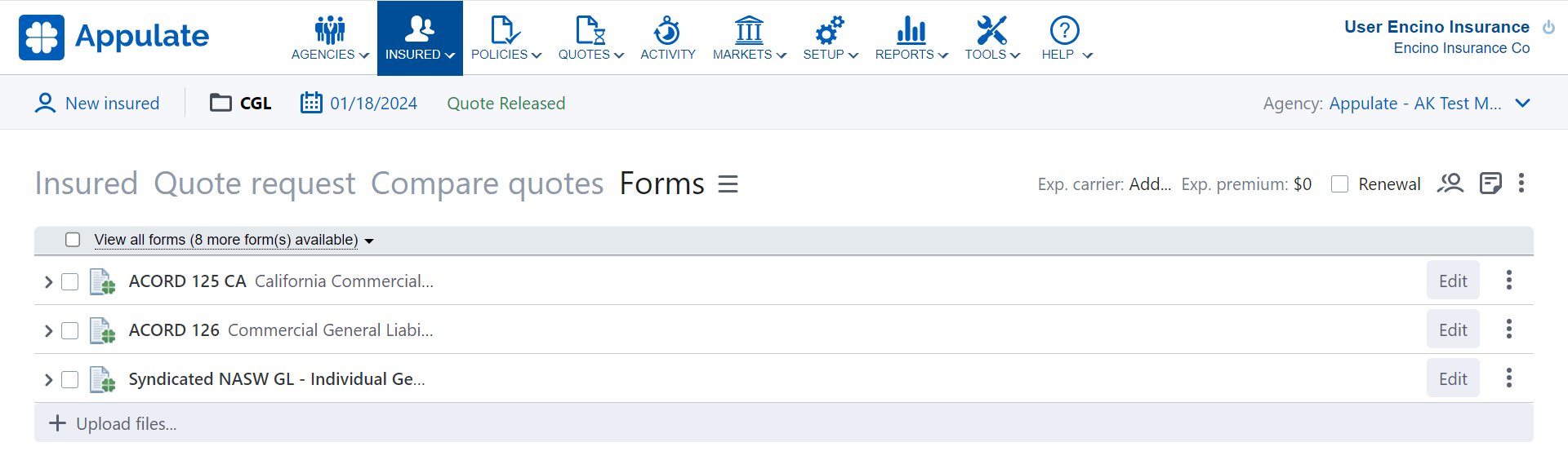 But in both cases, Appulate could be used to facilitate the actual quote creation. So the MGA or carrier that wants to take advantage of this will need to provide Appulate with the quote template.