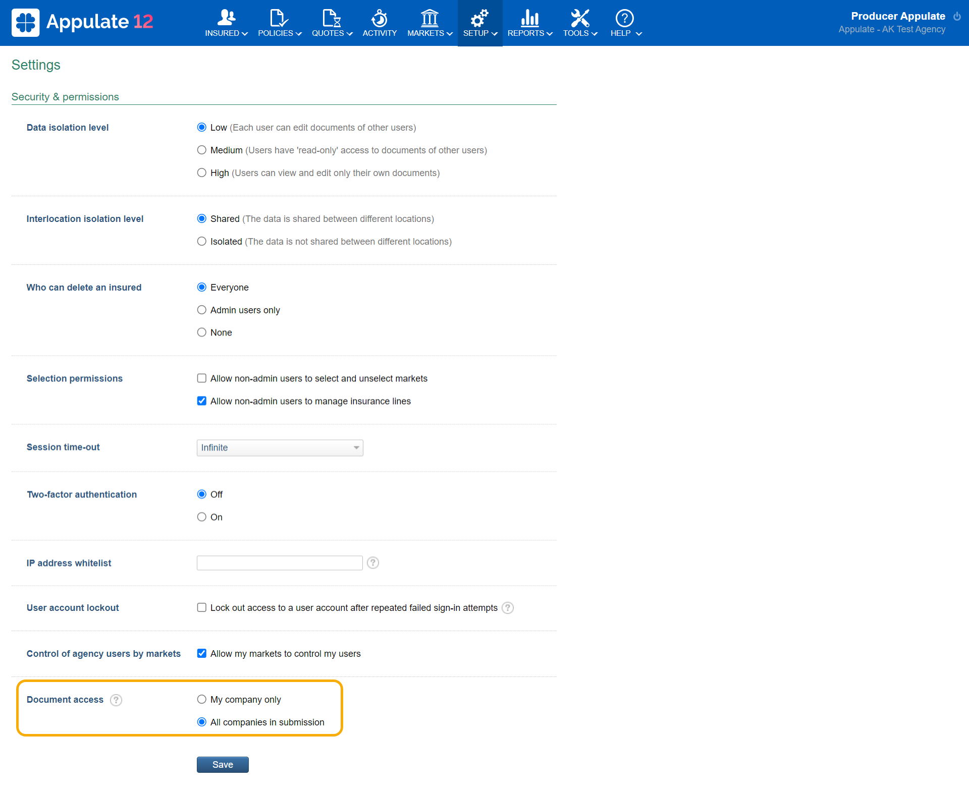 - My company only - Documents will be shared only between the users of the company that uploaded them. They will not be attached to the submission and emails to the market.