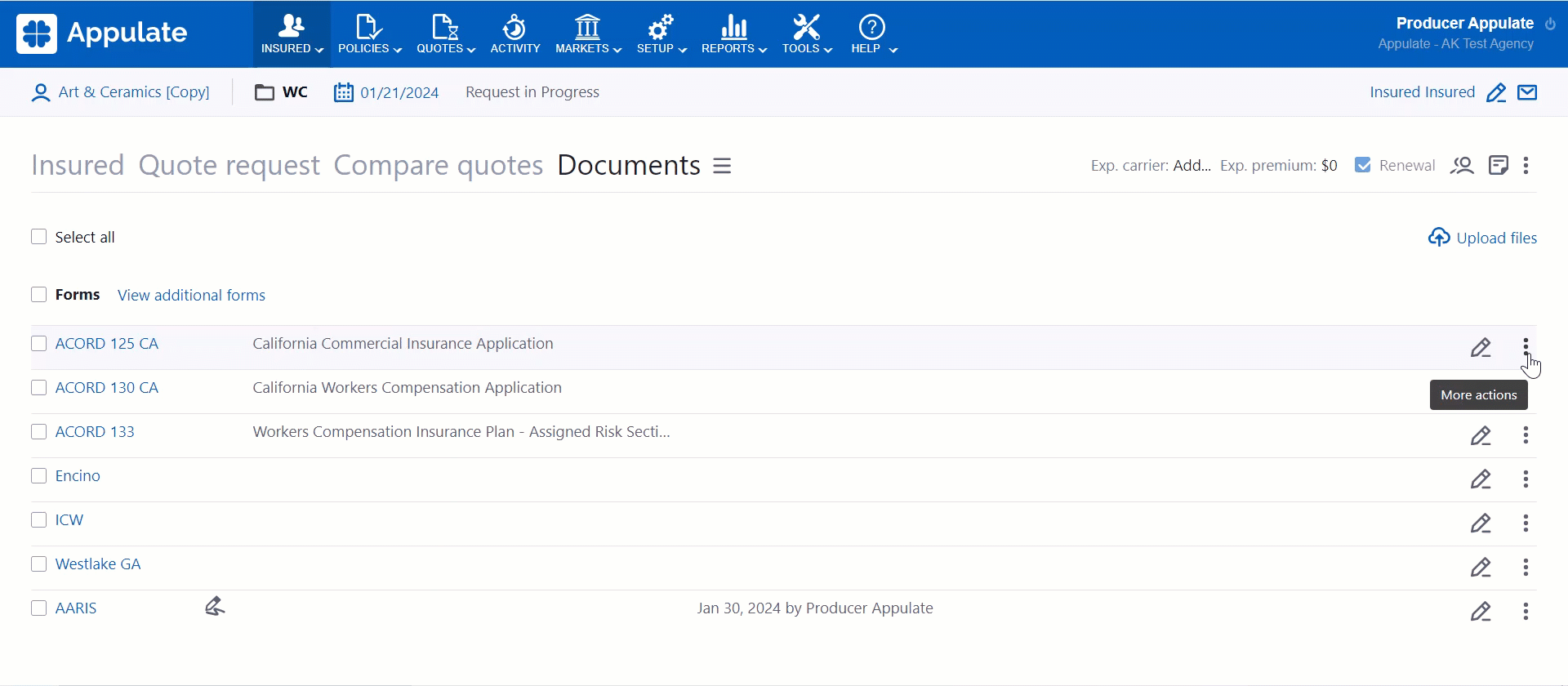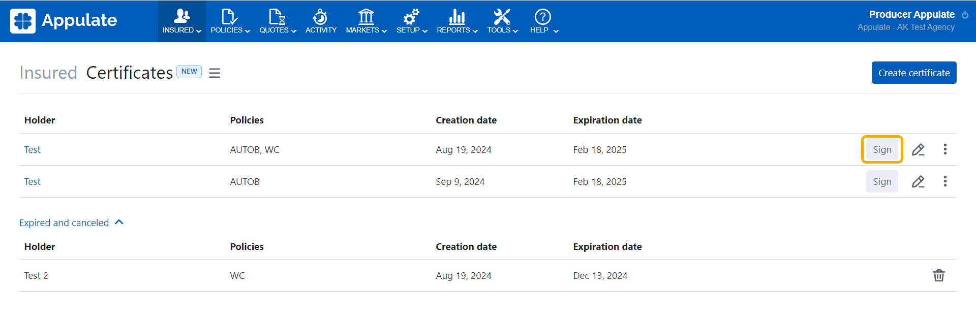 Unlimited document signing is part of the Appulate ProducerConnect Premium package. However, some markets allow all agents to sign their supplemental forms. Document signing is also available to all agents during policy binding.