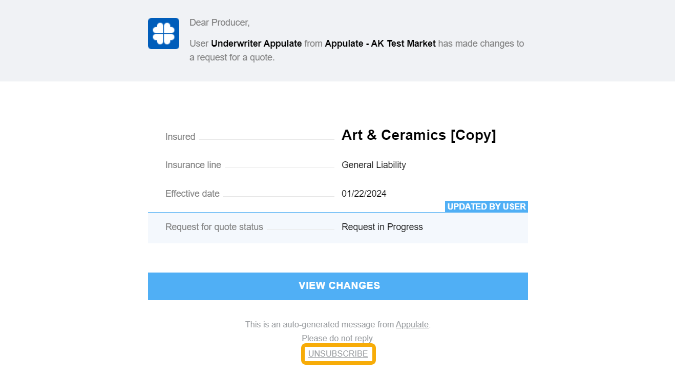 When an agency or market user works with the Appulate system, various notifications might be sent to their colleagues, partners, and clients to inform them about this user's activity.