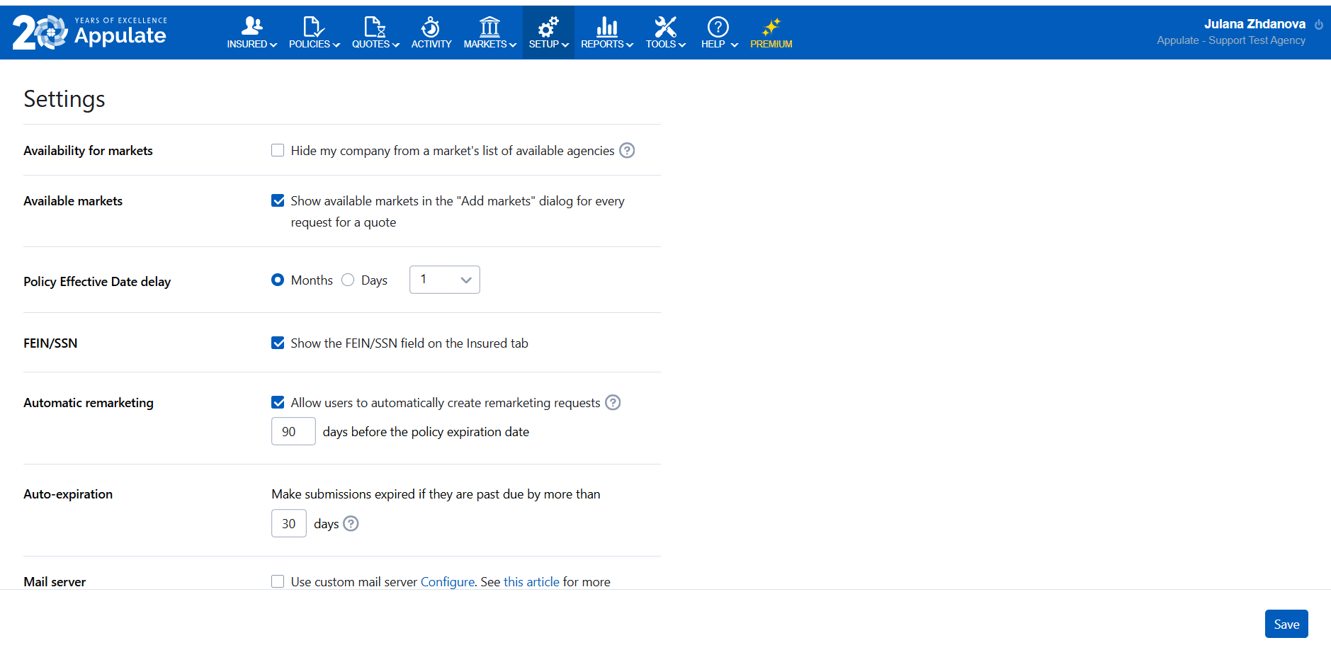 We recommend using your own mail server for handling Appulate mail. Your company's Admin can configure this in the Settings.