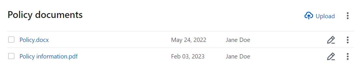 - the name of the person who uploaded or generated it. For policy forms, this isn't shown;