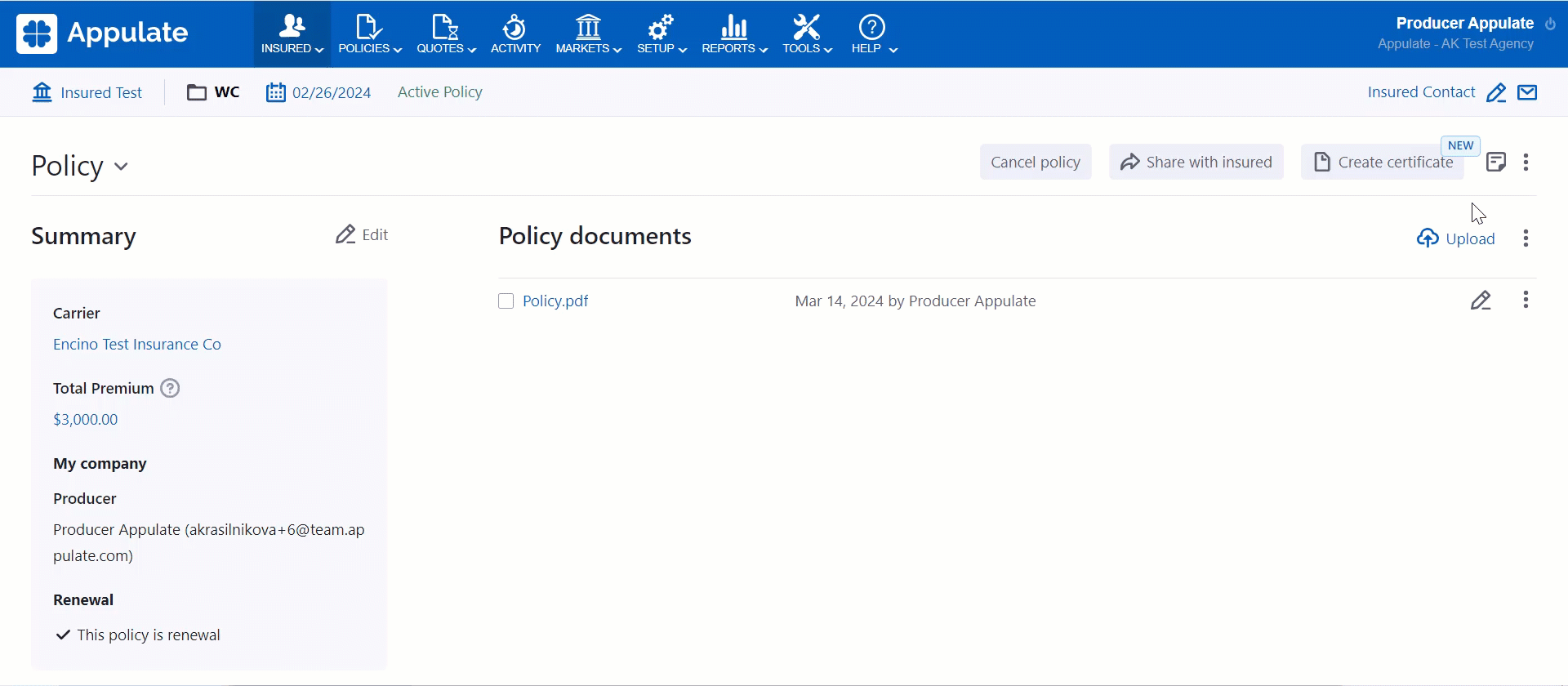 - Added Internal notes will be available in the Profile section of the Insured page.