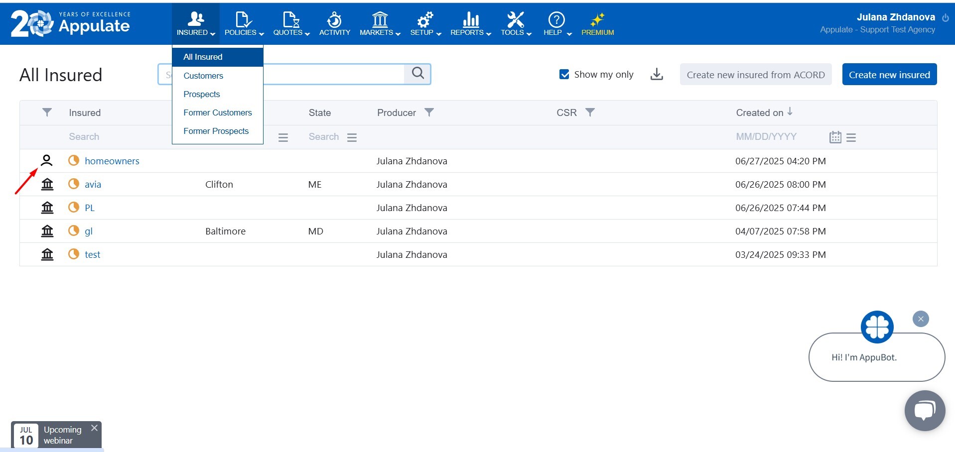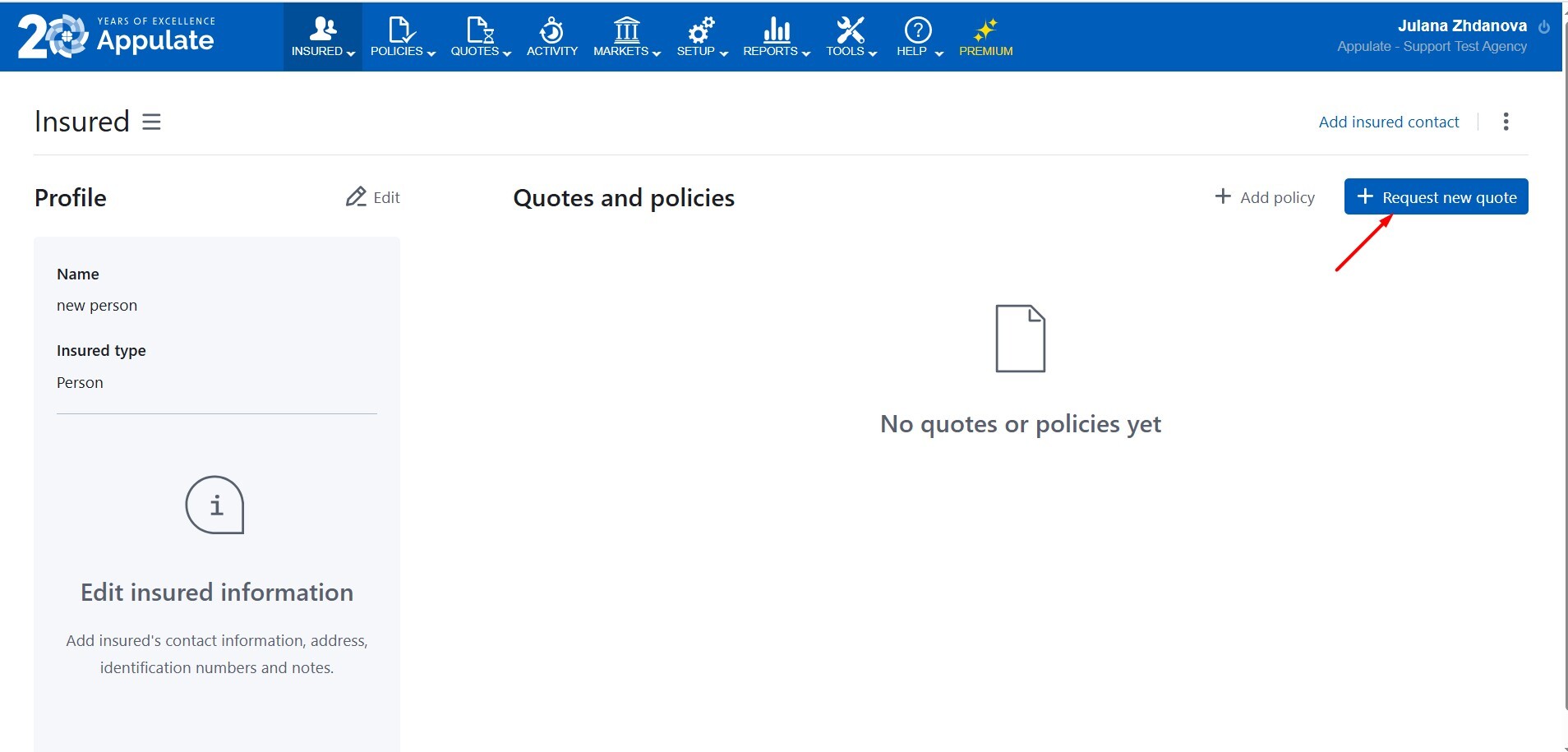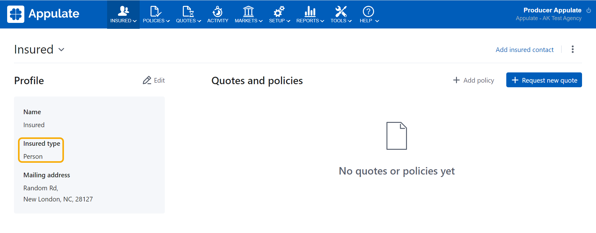 1. Make sure that the Insured type is Person. You can check this by opening the Insured page > Profile.