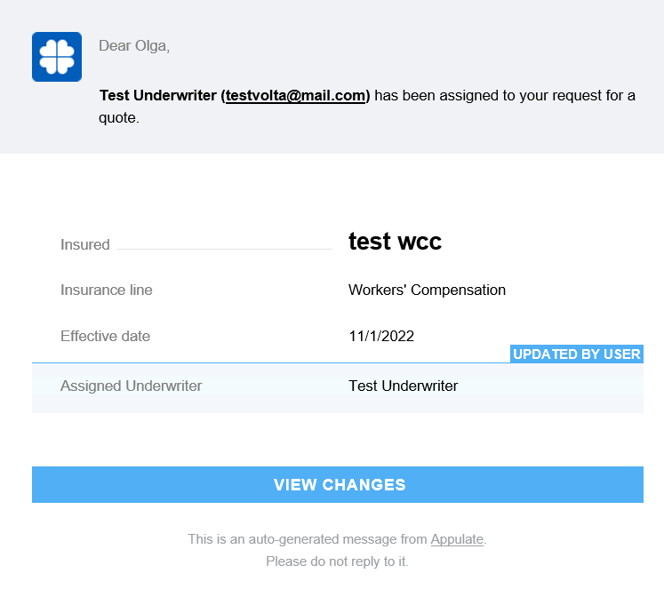 Note: A notification is not sent if a user assigned to a request on the agency side has been deleted or is inactive, also if a request or an Insured has been deleted on the agency side.