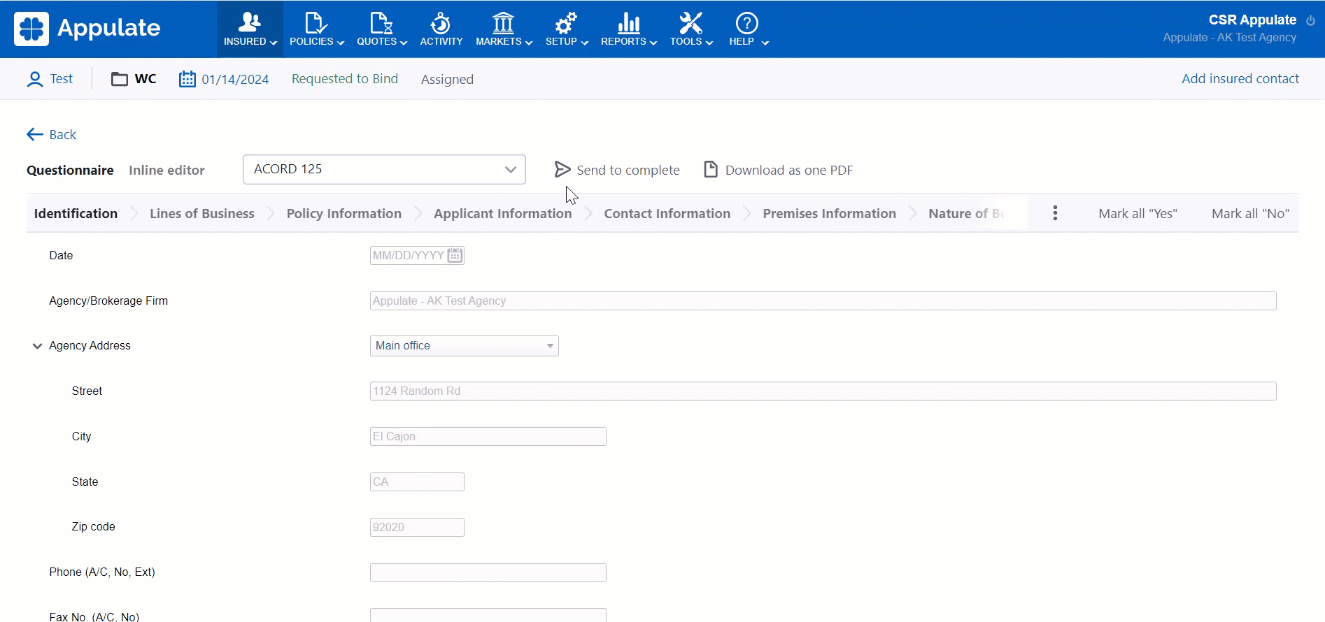 This article explains how to send a form to the insured or agent in Appulate.