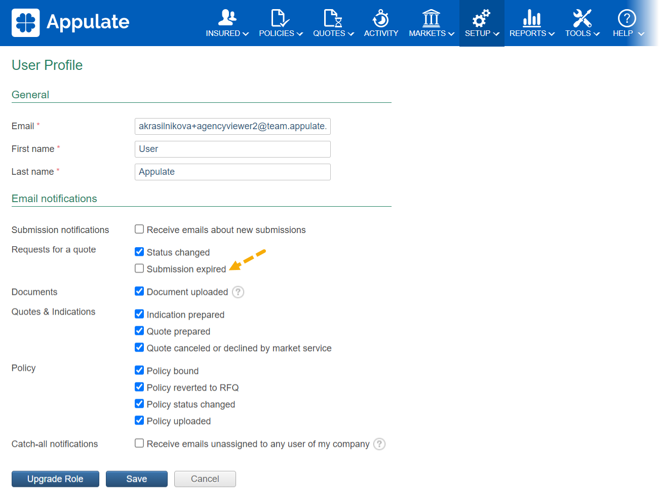 To turn off notifications of expired submissions for yourself or, if you're an Admin, another company user: