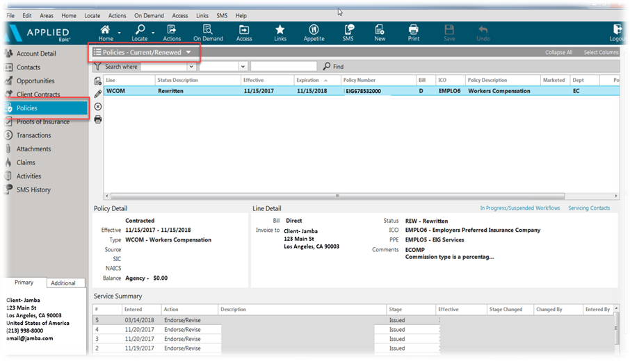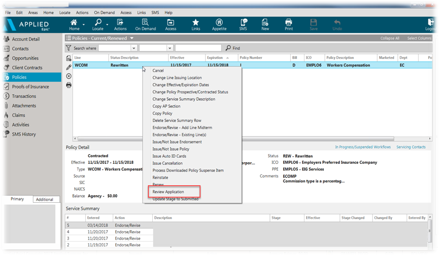 1. Locate the insured file under Policies and Current/Renewed and right-click the file name to open.