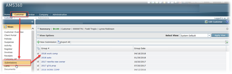 1. Locate the insured file under Customer and Submissions and click the file name to open.