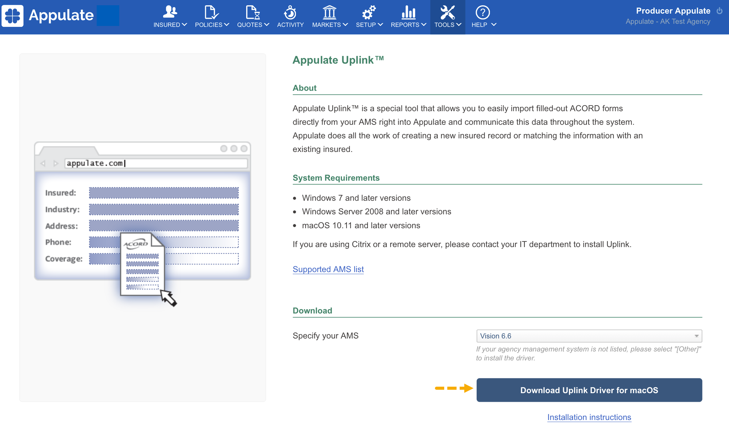 Appulate Uplink™ is a special tool that allows you to easily import filled-out ACORD forms directly from your AMS right into Appulate. Appulate does all the work of creating a new insured or matching the information with the existing insured.