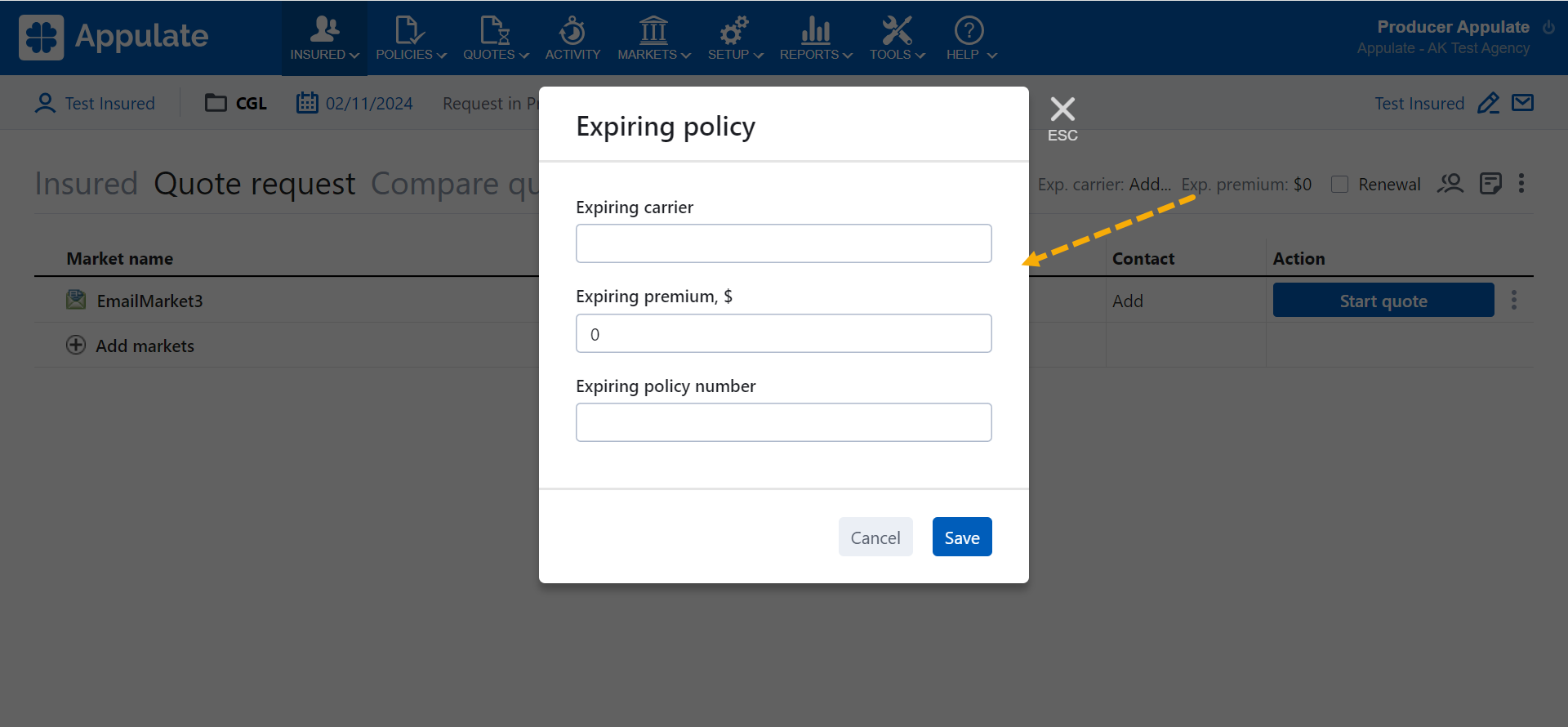 After you upload a quote, you can edit its premium by clicking Edit quote in the quote's menu
